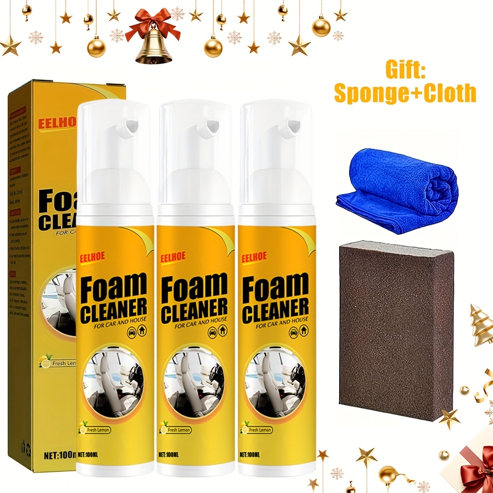 Included in the package: 3 Multi-purpose Foam Cleaners, 1 Sponge, 1 Cloth
